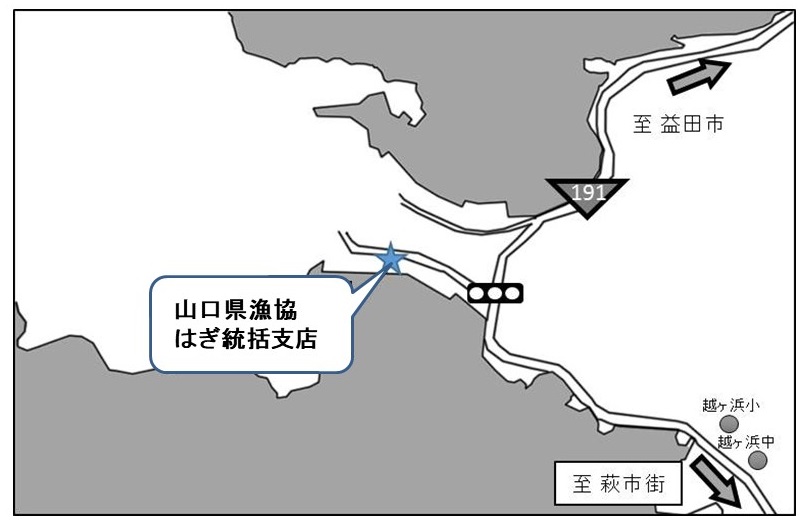場所:山口県漁協はぎ統括支店(萩市大字椿東6446番地5)※地図参照