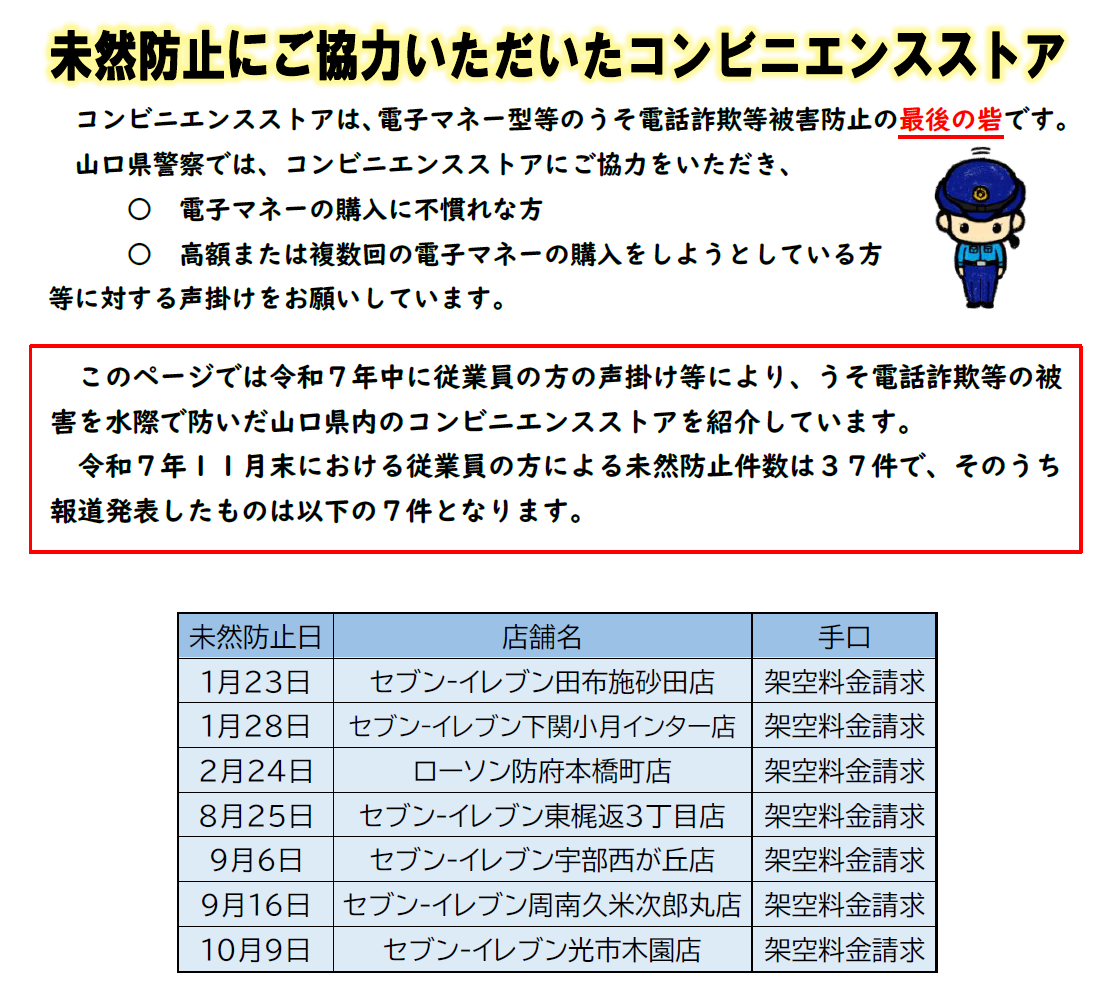 未然防止にご協力いただいたコンビニエンスストア(令和7年11月末) (その他:265KB)