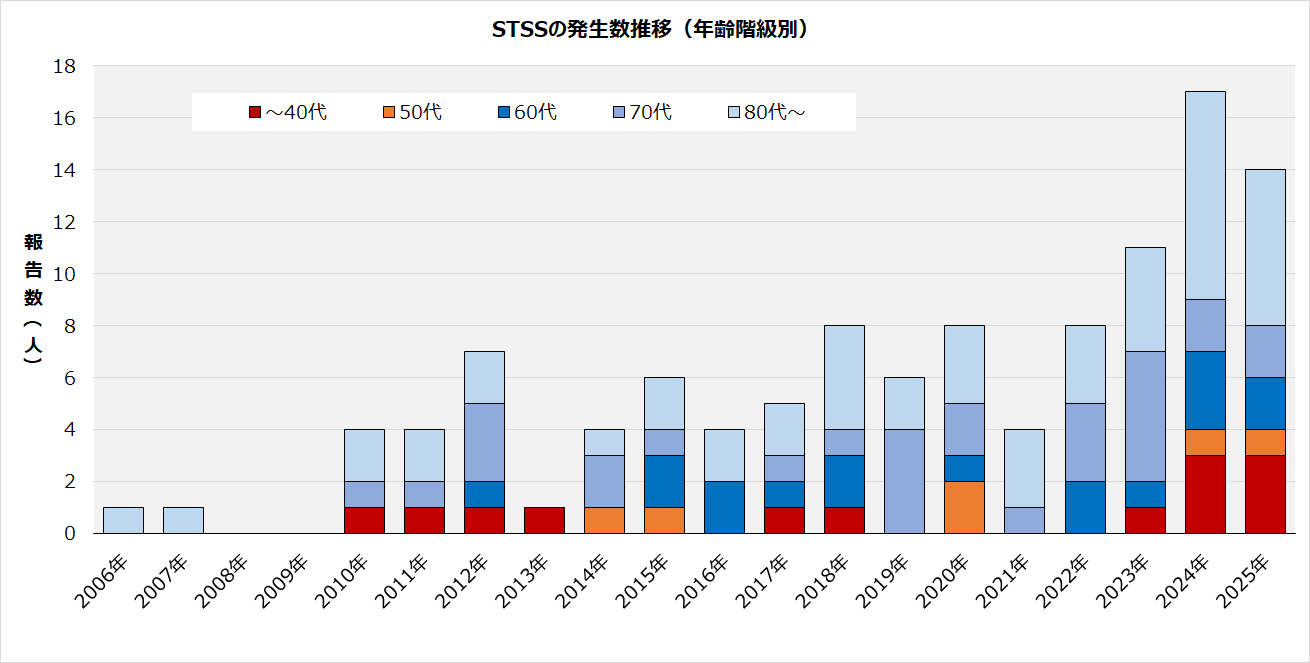 国内におけるSTSSの発生状況は、2023年941人、2024年1888人(速報値)と過去最多を更新しています。山口県においても、2023年12人、2024年17人と増加しており、2025年5月時点ですでに8人の報告がありました。