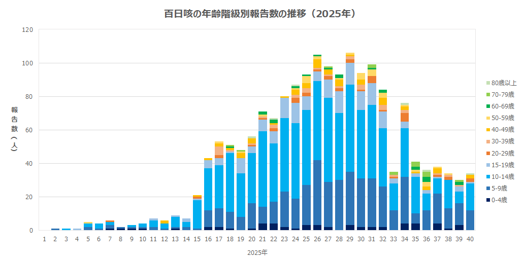 全数把握へ移行した2018年以降の県内の報告数は、2018年:189人、2019年:348人、2020年:23人、2021年:11人、2022年:6人、2023年:5人、2024年:21人と推移し、コロナ禍において減少しました。2024年後半から増加傾向がみられはじめ、2025年に入ってから顕著に増加しています。20歳未満の報告が多くを占めている状況です。